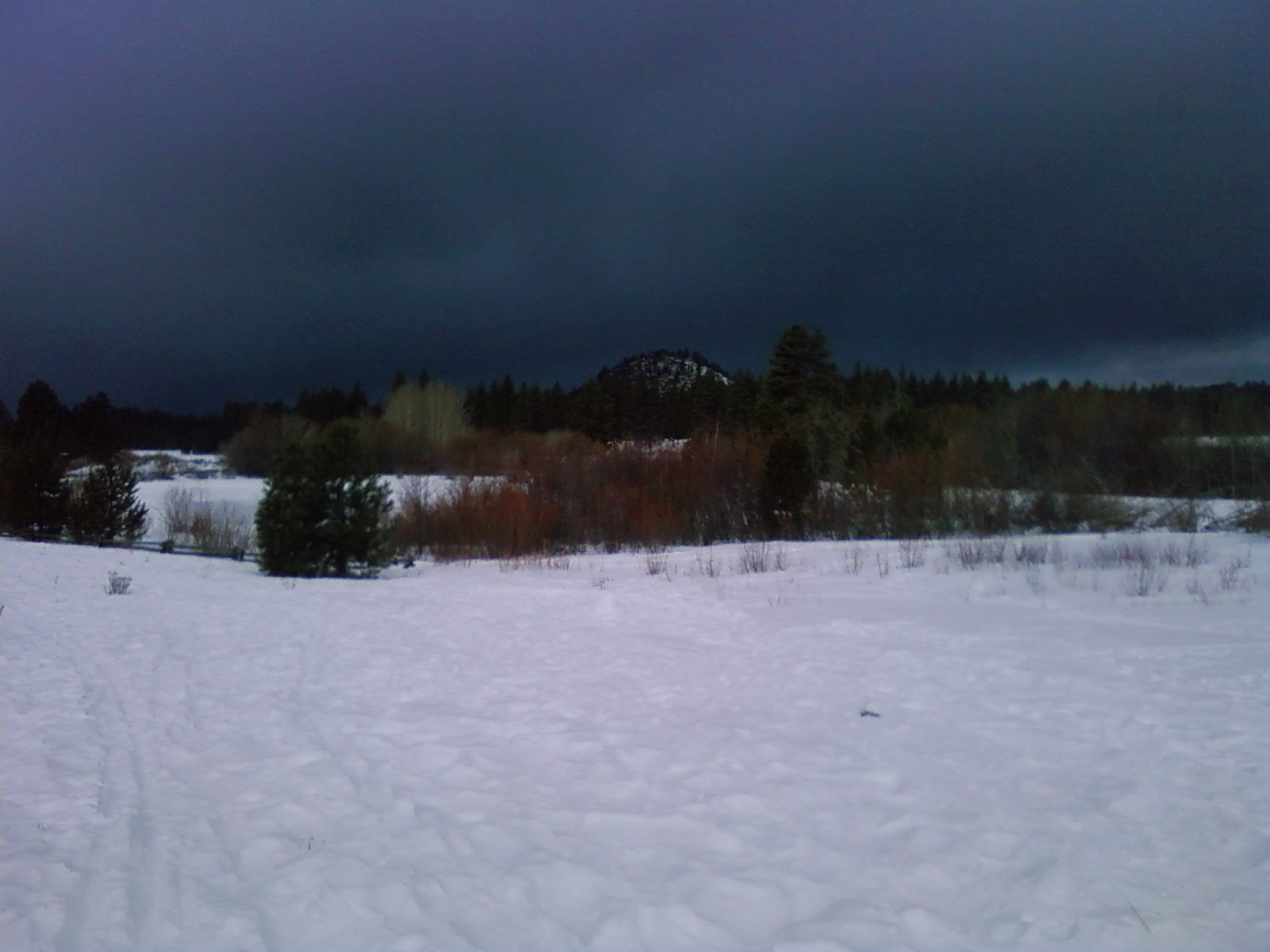 COLORS BETWEEN OMINOUS SKY AND SNOWY MEADOW